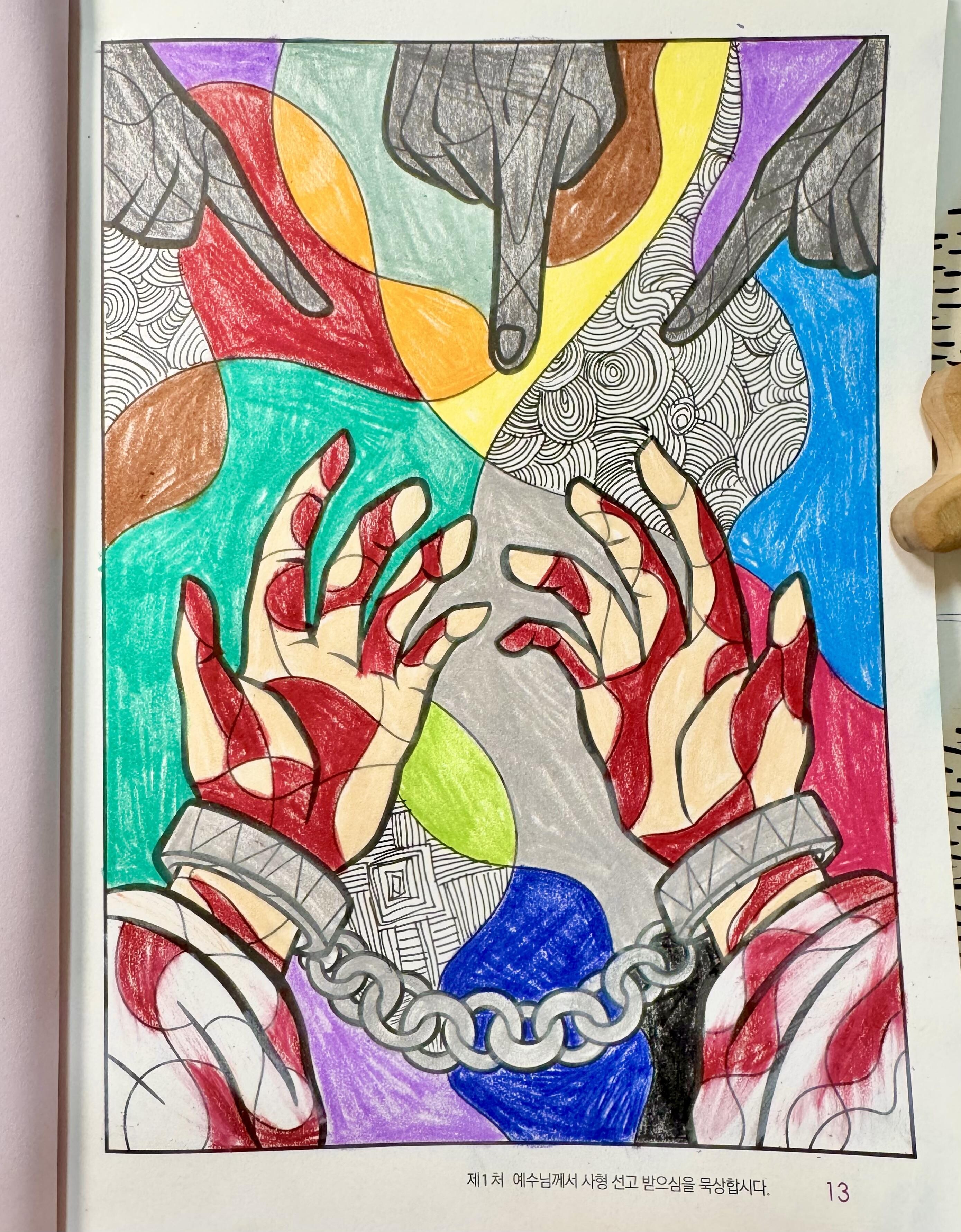 조재형 신부님의 묵상글을 읽으며 조각난그림에 색을 입히다 보니, 자연스럽게 주님의 수난을 상상하게 되었고, 그 장면에 어울리는 색을 고르고 있는 제 모습을 발견하게 되었습니다👍
