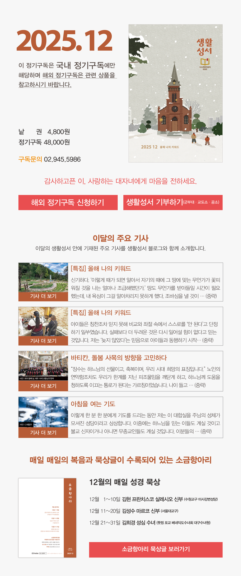매달 받아보는 『생활성서』는 정성과 사랑이
