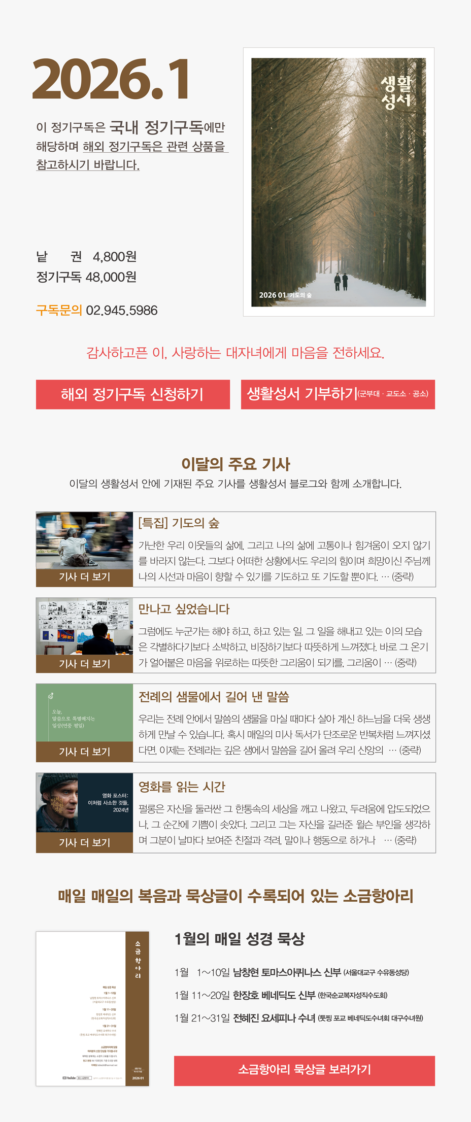 매달 받아보는 『생활성서』는 정성과 사랑이