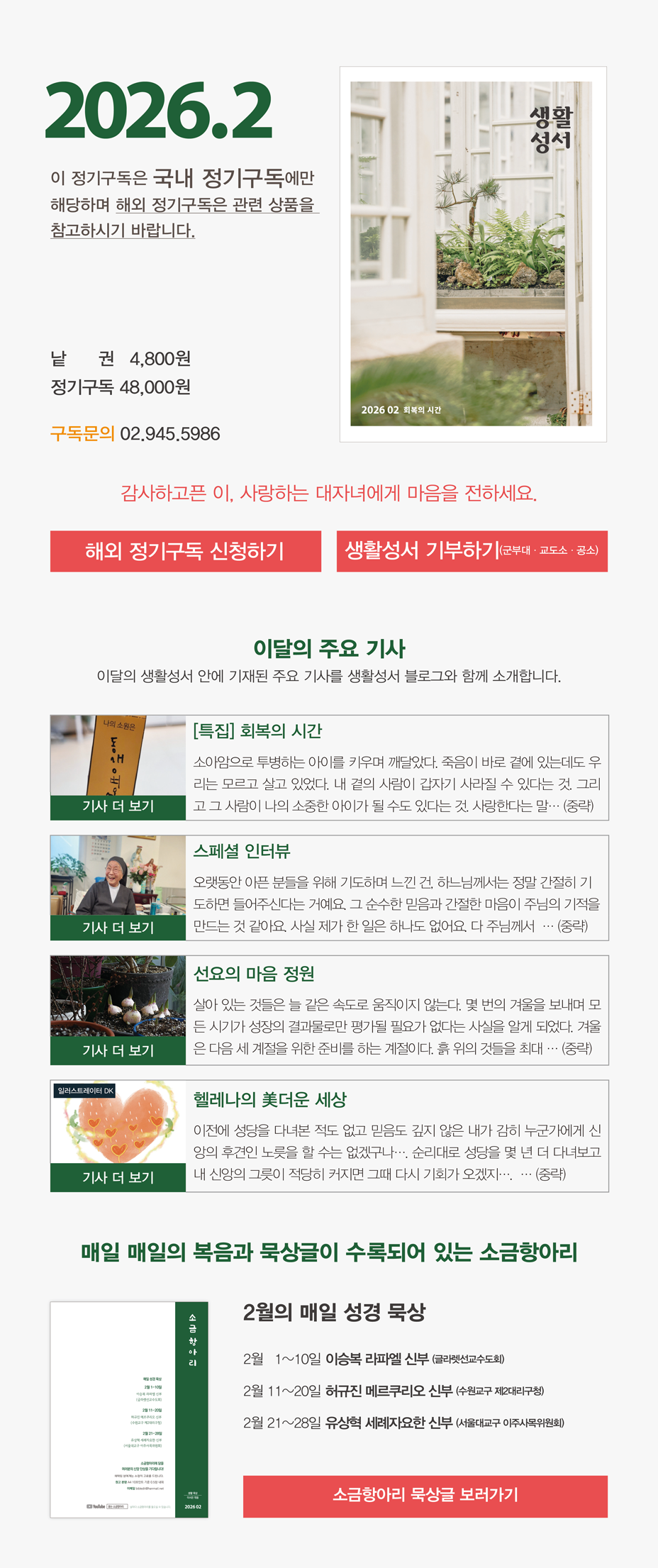 매달 받아보는 『생활성서』는 정성과 사랑이