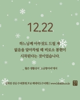 [생활성서 - 소금항아리]우리가 기뻐하며 그분 앞에서 나 자신을 낮출 때, 그분은 더욱 커지실 것입니다.⠀2025/12/22/동지⠀루카 복음 1장 46-56절“내 영혼이 주님을 찬송하고 내 마음이 나의 구원자 하느님 안에서 기뻐 뛰니….”⠀내 영혼이 주님을 크게 하며가브리엘 천사로부터 예수님의 탄생 예고를 들은 마리아는 자신에게 닥칠 비난이나 어려움을 내려...