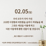 [월간 생활성서 – 소금항아리]우리 마음에 사랑의 기운이 차오를 때 그 사랑이 밖으로 퍼져 나갑니다.⠀2023/2/8/연중 제5주간 수요일⠀마르코 복음 7장 14-23절“사람 밖에서 몸 안으로 들어가 그를 더럽힐 수 있는 것은 하나도 없다. 오히려 사람에게서 나오는 것이 그를 더럽힌다.”⠀나무 같은 사람우리는 보통 심지가 굳고 어디에도 쉽게 흔들리지 않는 ...