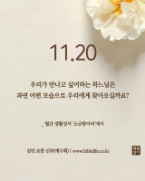 [생활성서 - 소금항아리]우리가 만나고 싶어하는 하느님은 과연 어떤 모습으로 우리에게 찾아오실까요?⠀2025/11/20/연중 제33주간 목요일⠀루카 복음 19장 41-44절“하느님께서 너를 찾아오신 때를 네가 알지 못하였기 때문이다.”⠀하느님의 모습흥미롭게도 전 세계적으로 신이 사람을 찾아온다는 이야기들, 신화와 서사들은 많습니다. 먼저 창세기에 아브라함이...