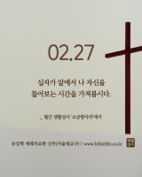 [생활성서 - 소금항아리]십자가 앞에서 나 자신을 돌아보는 시간을 가져봅시다.⠀2026/2/27/사순 제1주간 금요일⠀마태오 복음 5장 20ㄴ-26절“먼저 그 형제와 화해하여라. 그런 다음에 돌아와서 예물을 바쳐라.”⠀떠넘기고 싶은 무거운 마음이스라엘 사람들은 자신의 죄를 속량하기 위하여 제단에 예물을 바쳤습니다. 예수님의 죽음도 이러한 맥락에서 풀이될 수...