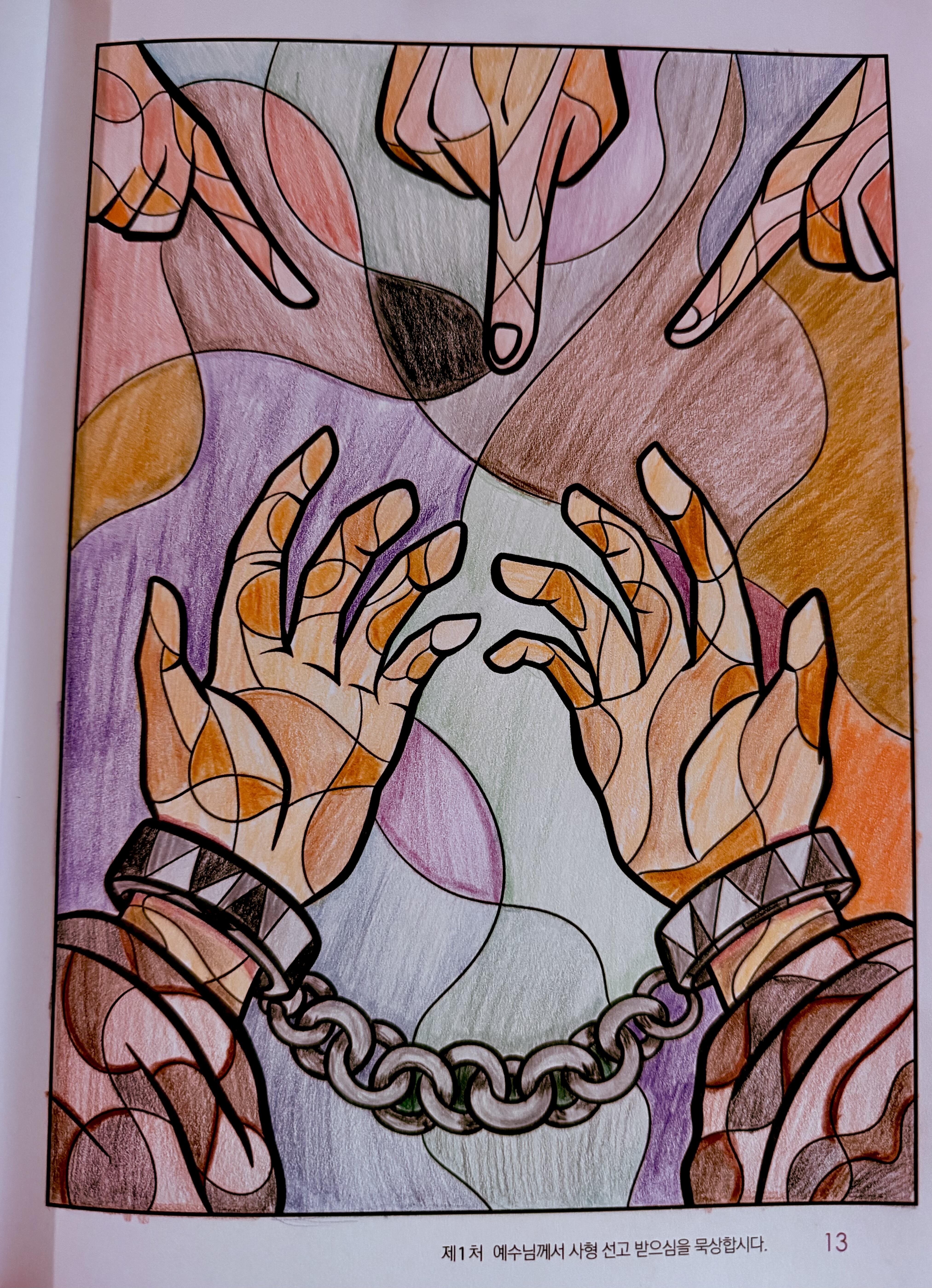 또한 14처 각각이 부담스럽지 않은 분량으로 구성되어 있어, 하루 한 처씩 혹은 한 주에 몇 처씩 나누어 묵상하기에도 적절하다. 색을 고르고, 선을 따라가며, “왜 이 길을 가셨을까?”를 마음속으로 묻는 시간은 어느새 조용한 기도가 된다.