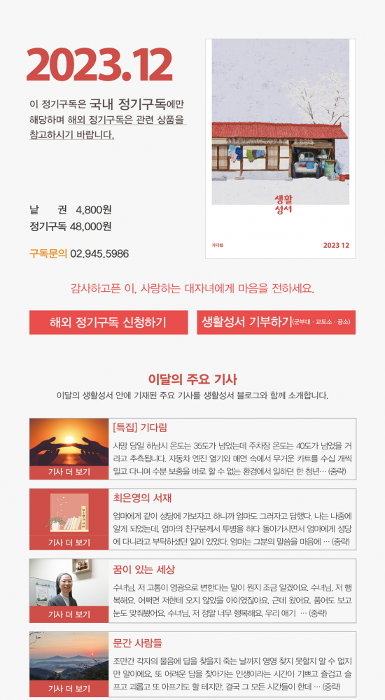 매달 받아보는 『생활성서』는 정성과 사랑이